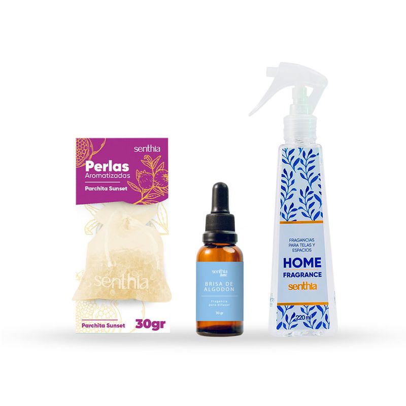 Kit Essence Trio (Home Fragrance + Fragancia para Difusor + Perlas aromatizadas) 220 ml + 30 gr + 30 gr