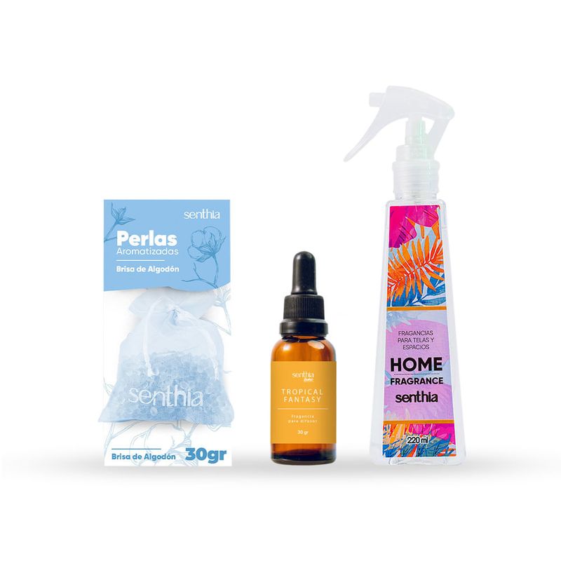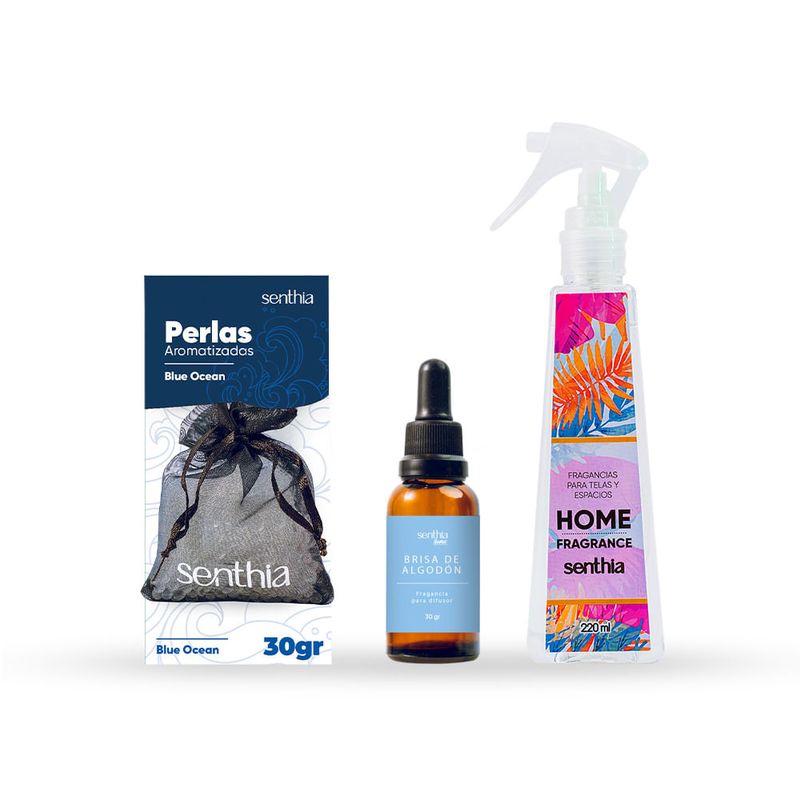 Kit Essence Trio (Home Fragrance + Fragancia para Difusor + Perlas aromatizadas) 220 ml + 30 gr + 30 gr
