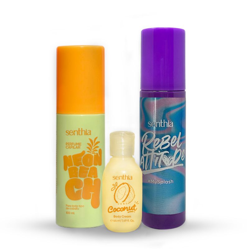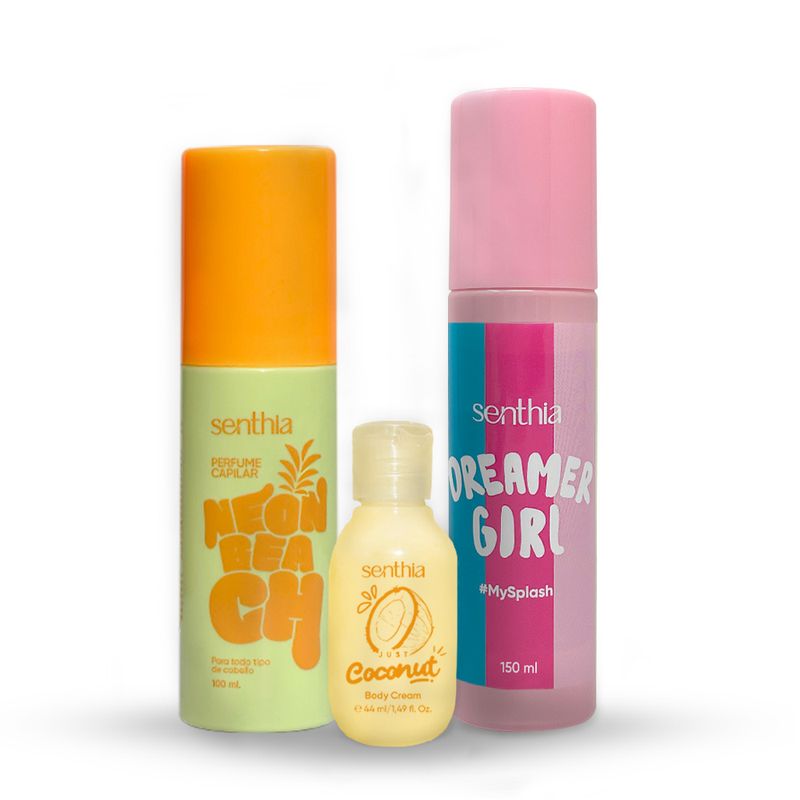 Kit Perfume Capilar Neon Beach + Mini Crema Coconut + Body Splash 100 ml
