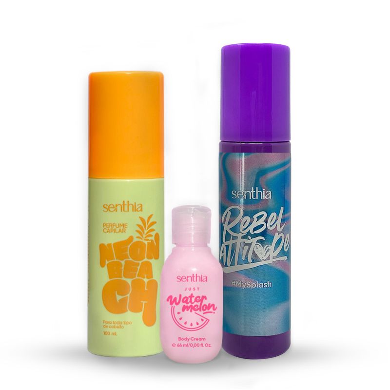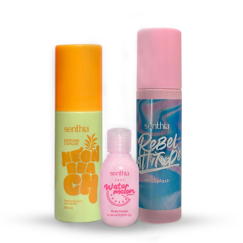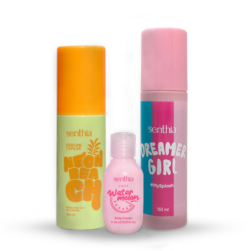 Kit Perfume Capilar Neon Beach + Mini Crema Water melon + Body Splash 100 ml