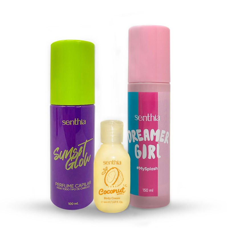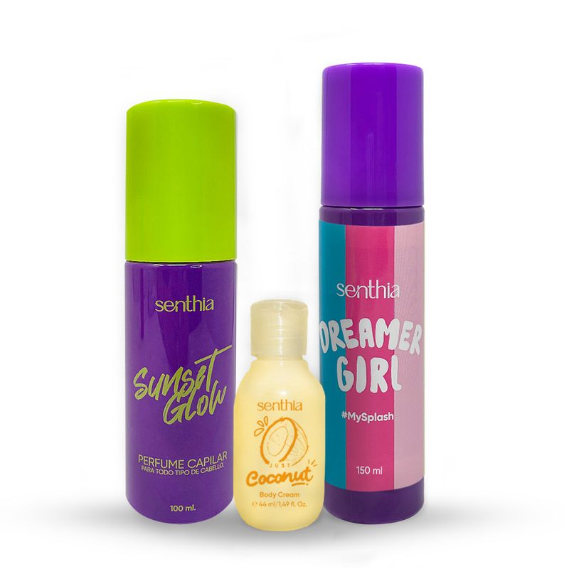 Kit Perfume Capilar Sunset Glow + Mini Crema Coconut + Body Splash 100 ml