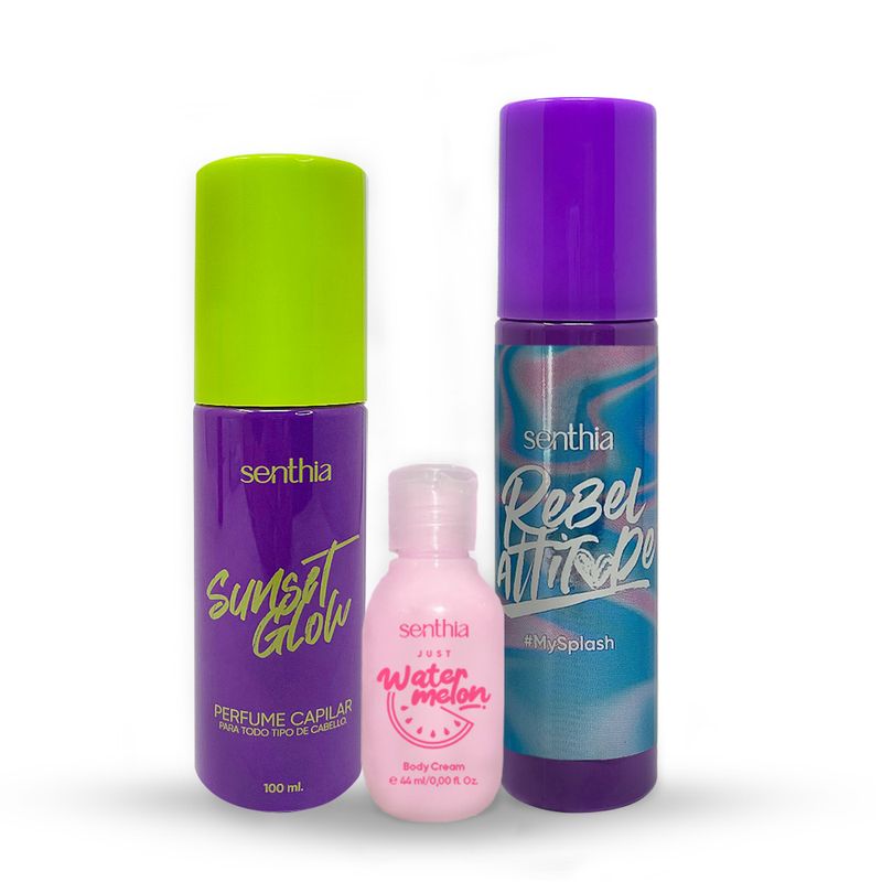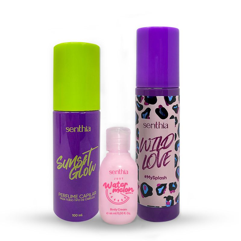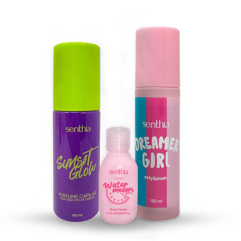 Kit Perfume Capilar Sunset Glow + Mini Crema Water melon + Body Splash 100 ml