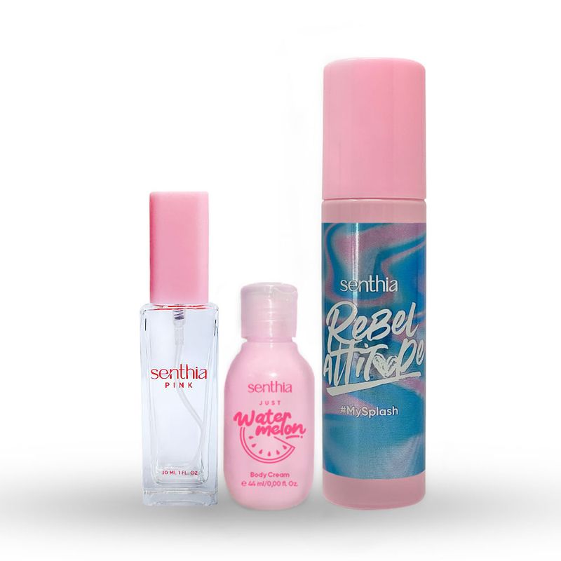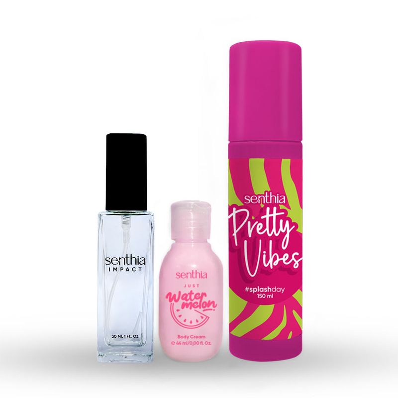 El Kit Watermelon Glow es la combinación ideal de frescura, suavidad y aroma irresistible. Incluye una fragancia de 1 oz, una mini crema Watermelon y un splash personalizado con tu fragancia SENTHIA favorita.